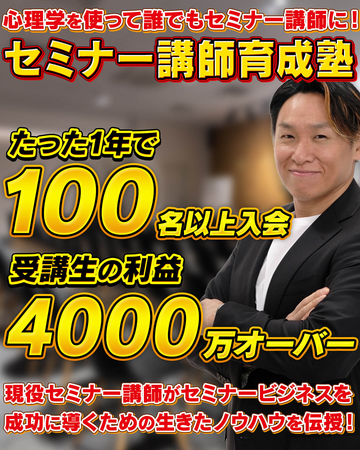 これらを確立できたことで、私の様に店舗ビジネスだけでなく、新しくセミナー事業を立ち上げたい方の支援をしたいと思い、今回のセミナー講師育成塾を開始しました。