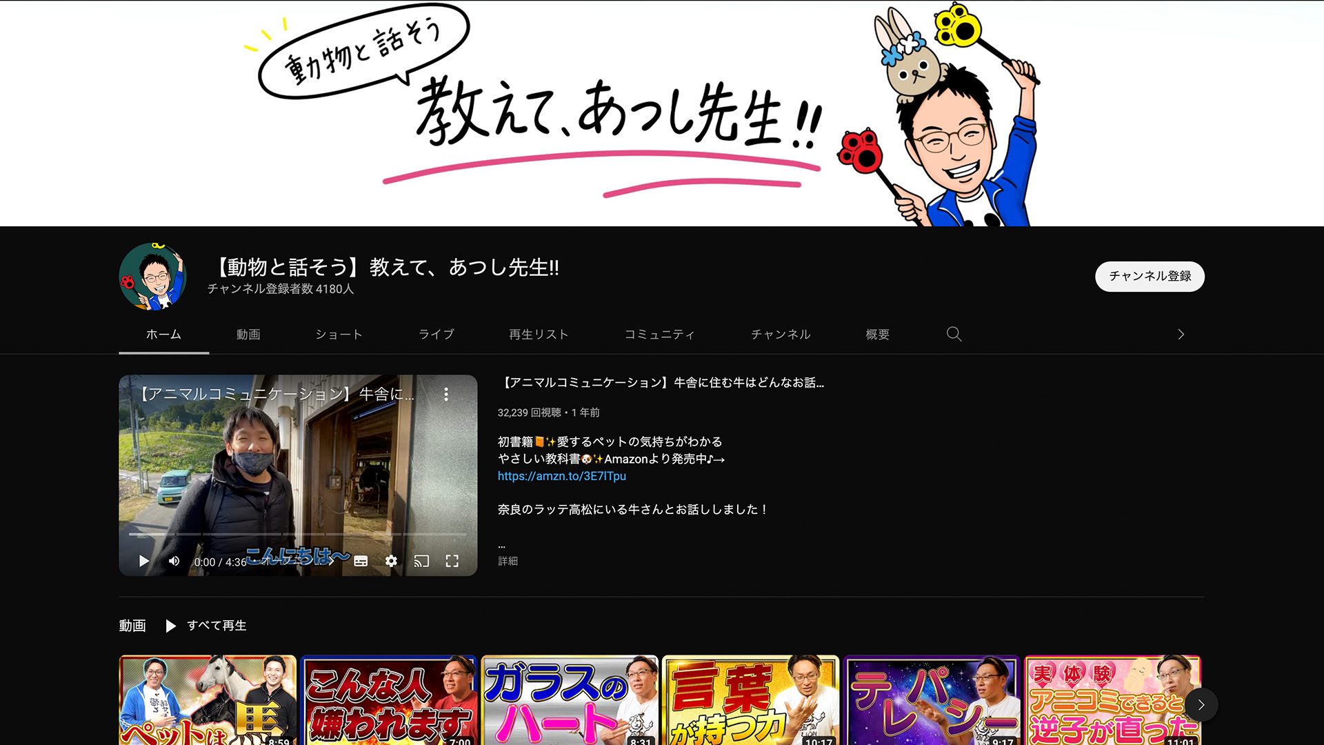 さらにYouTubeチャンネルの登録者数は4100名を超え(2022年11月時点)、動物と話すためのノウハウを詰め込んだ書籍「愛するペットの気持ちがわかるやさしい教科書」を出版。